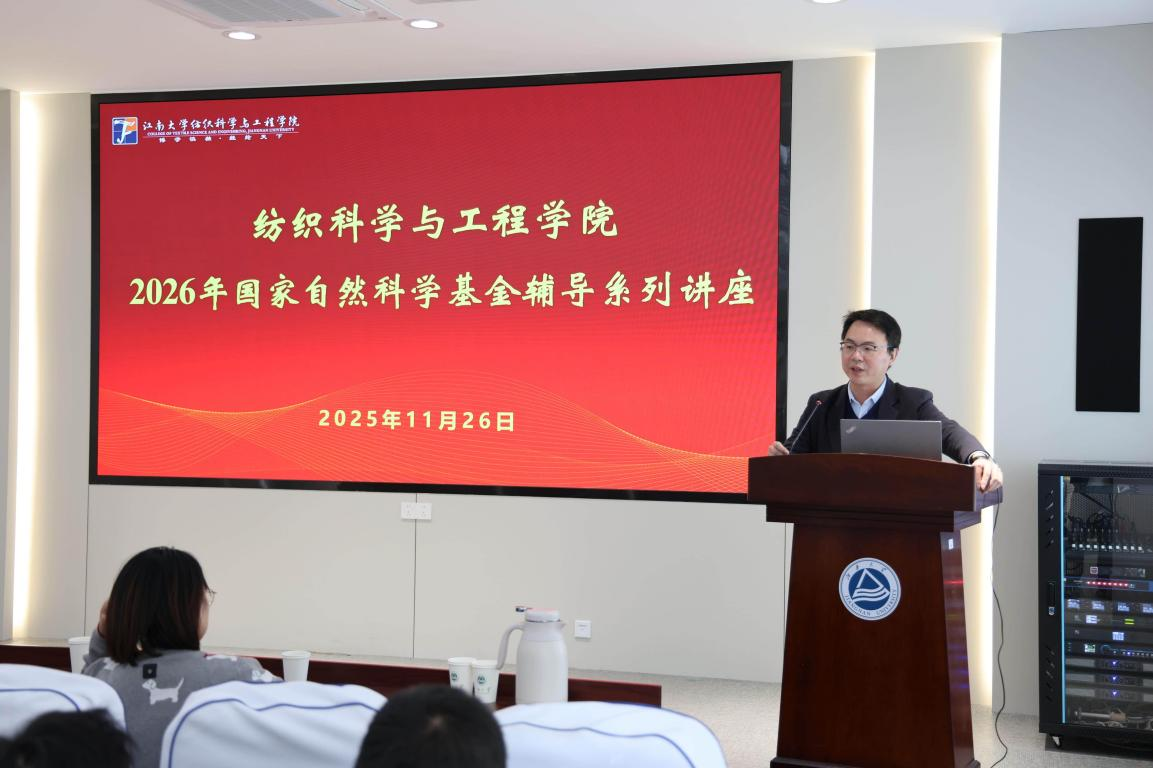 为扎实推进2026年度国家自然科学基金项目申报工作,有效提升项目申报质量与水平,11月26日下午,江南大学纺织科学与工程学院精心组织了国家自然科学基金申报系列讲座的首场活动。本次讲座特邀两位国家优秀青年基金获得者东华大学闫建华教授与本校生物工程学院刘延峰研究员担任主讲嘉宾,为学院教师带来了一场内容丰富、指导性强的申报辅导。本次讲座由副院长马丕波主持,学院党委书记张菁燕、副院长张丽平出席讲座,学院拟申报2026年国自然基金的教师及部分博士生参加了此次讲座。