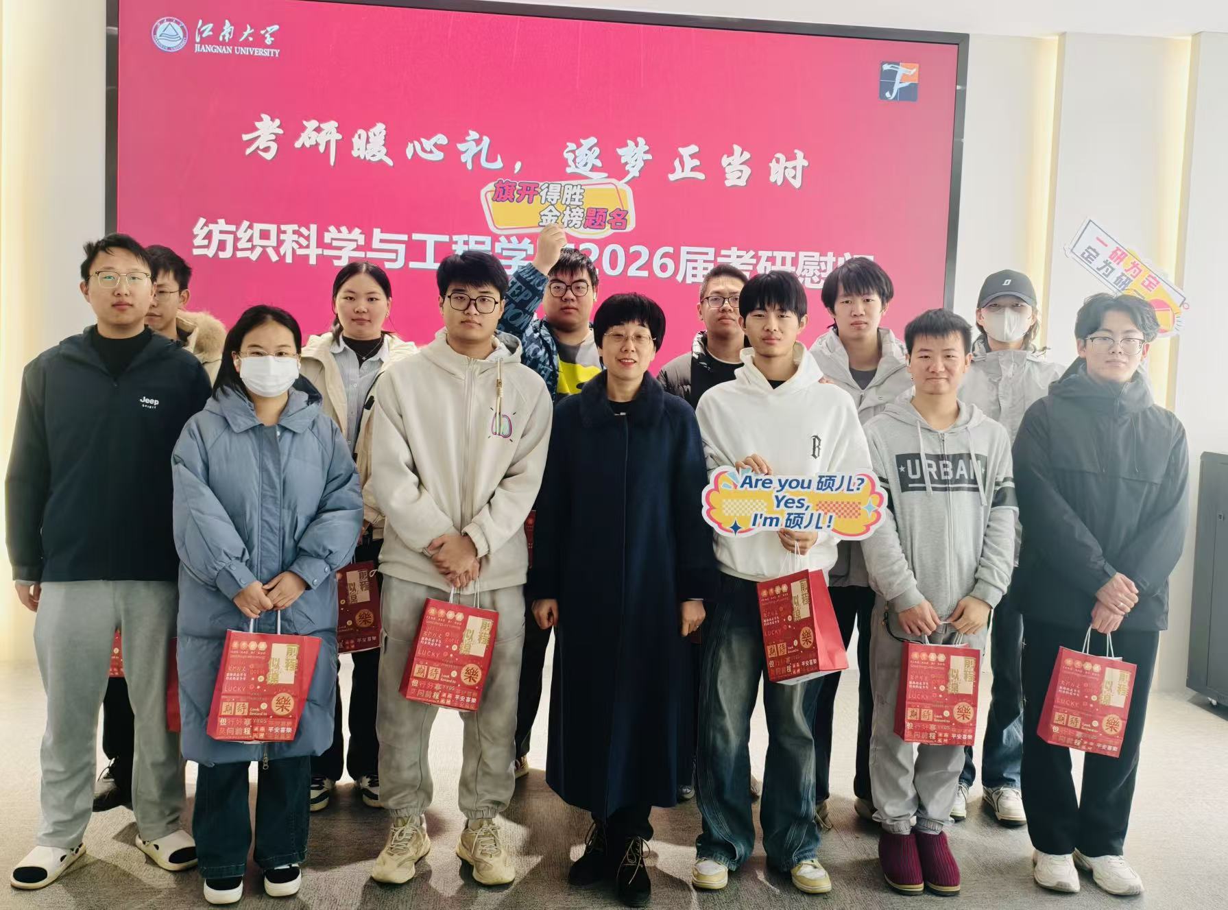 冬日暖阳,研途相伴。12月5日,纺织科学与工程学院精心举办2026届考研学子慰问活动。纺织科学与工程学院党委书记张菁燕、副院长马丕波、班主任代表与全体2026届考研学子齐聚一堂,共享这份冬日的温情。