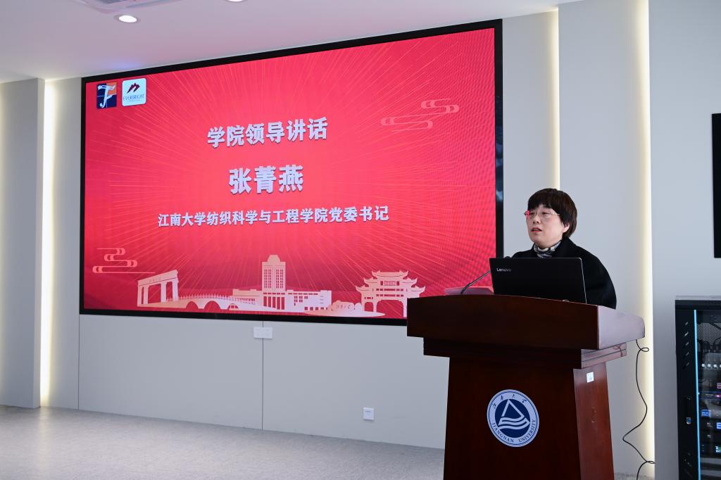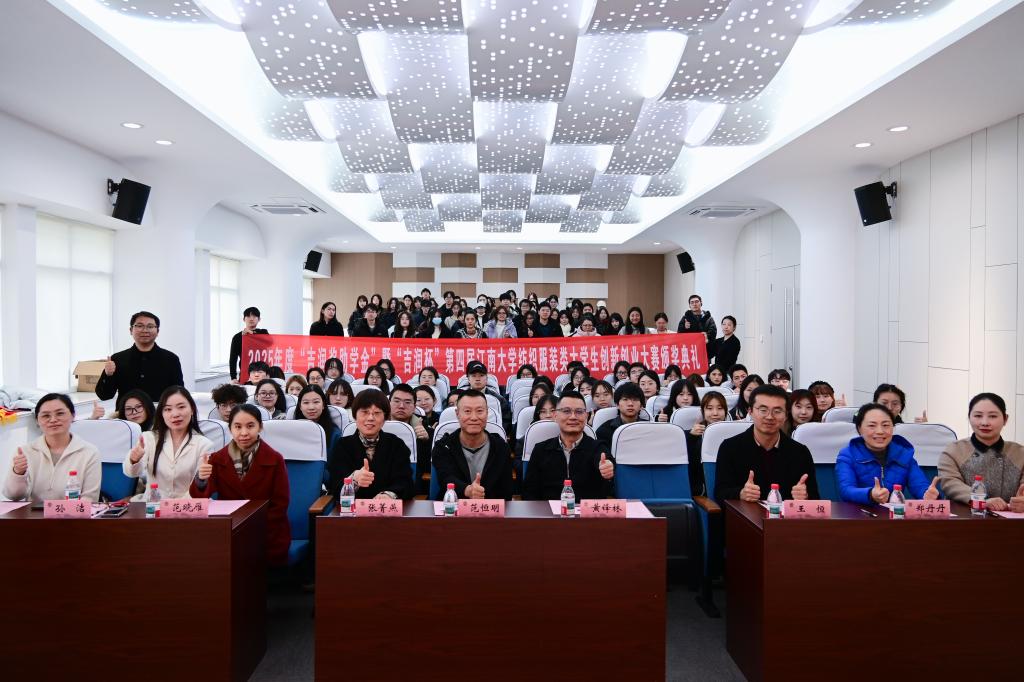 12月30日下午,2025年度“吉润奖助学金”暨“吉润杯”第四届江南大学纺织服装类大学生创新创业大赛颁奖典礼在纺织科学与工程学院A103报告厅举行。无锡市吉润国际贸易有限公司董事长范恒明、副董事长范晓雁、销售总监孙洁、培训经理何旭芳,江南大学本科生院副院长、教务处处长黄锋林,纺织科学与工程学院党委书记张菁燕,党委副书记、副院长王恒,商学院党委副书记、副院长郑丹丹,外国语学院党委副书记、副院长滕飞,全体获奖同学及学生代表共100余人参加,典礼由纺织学院辅导员伍胤鸿主持。
