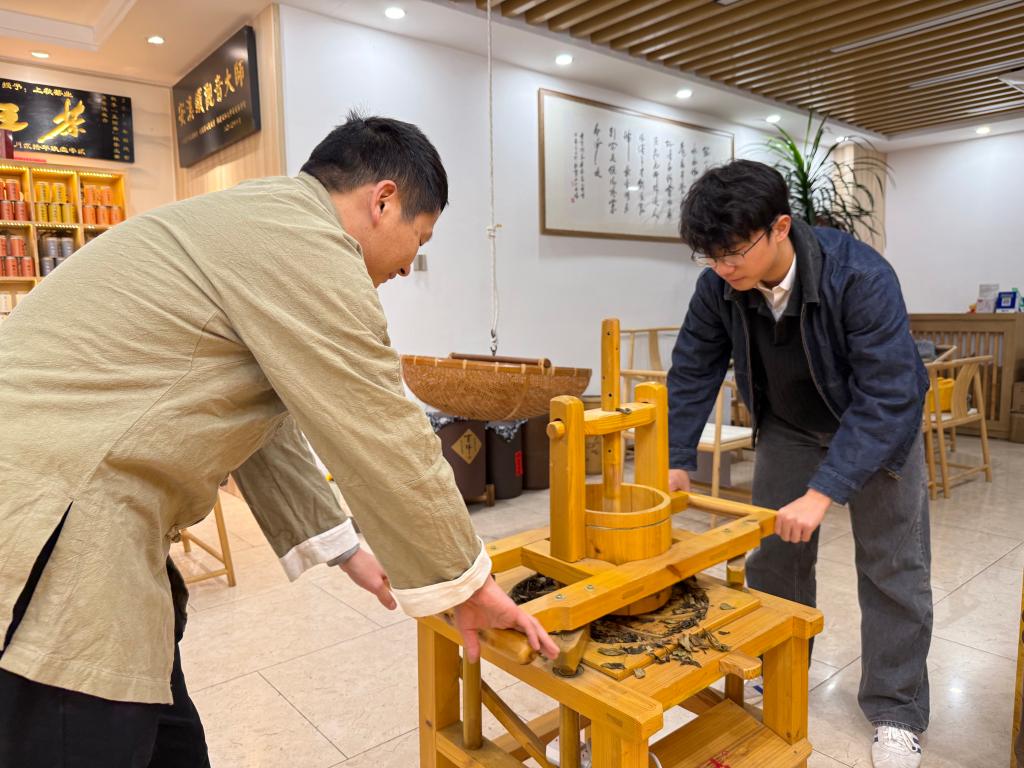 肖嘉诚同学体验非遗制茶技艺