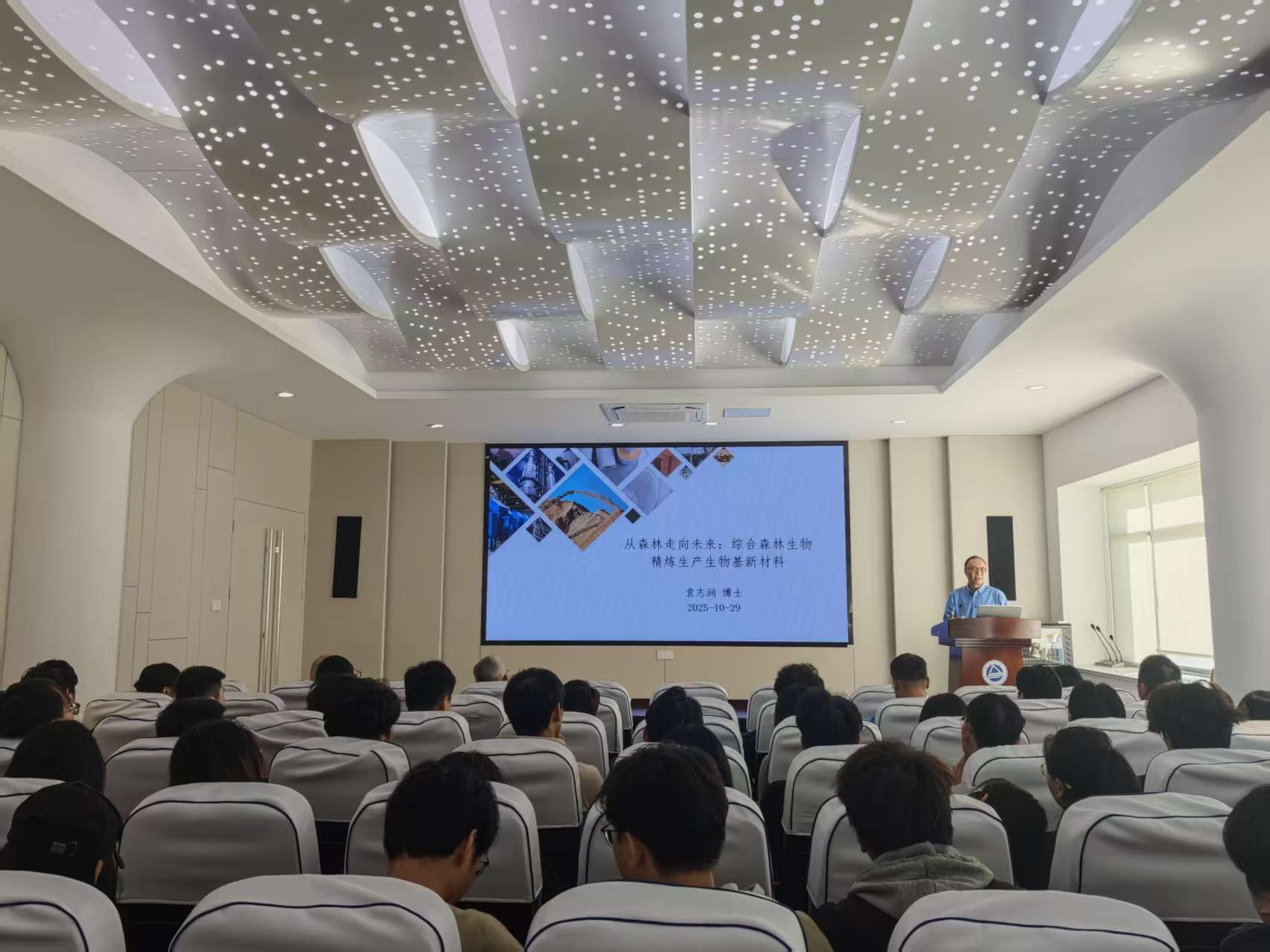 受纺织科学与工程学院邀请,加拿大工程院院士倪永浩教授及加拿大林产品创新研究院袁志润博士于2025年10月29日在学院A103会议室分别作了题为“Nanocellulose materials and their great potentials”及“从森林走向未来:综合森林生物精炼生产生物基新材料”的学术报告,此次学术交流会由纺织科学与工程学院副院长刘庆生教授主持。