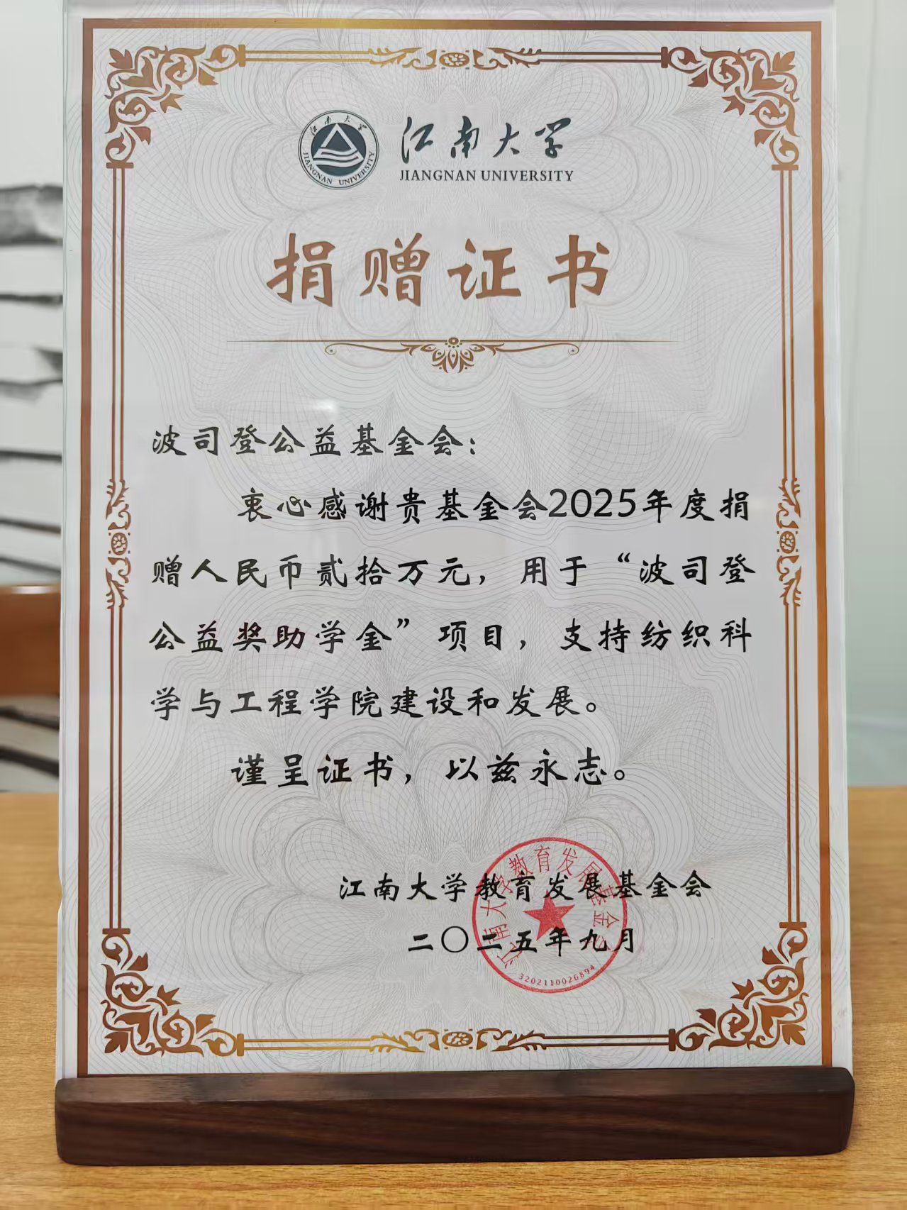 据悉,2011年起,波司登公益基金会在江南大学设立了德康助学金,八年累计资助金额60余万元,为近百名江南学子提供了学业资助。2019年,波司登公益基金会又捐资100万元,在江南大学纺织科学与工程学院设立“波司登公益奖助学金”,全力支持江南大学教育发展事业,为纺织服装行业的人才培养助力增益。截止当前,累计资助学生五百余人,受助学生中不乏涌现国家奖学金获得者、中国大学生自强之星、校长特别奖等典型代表。