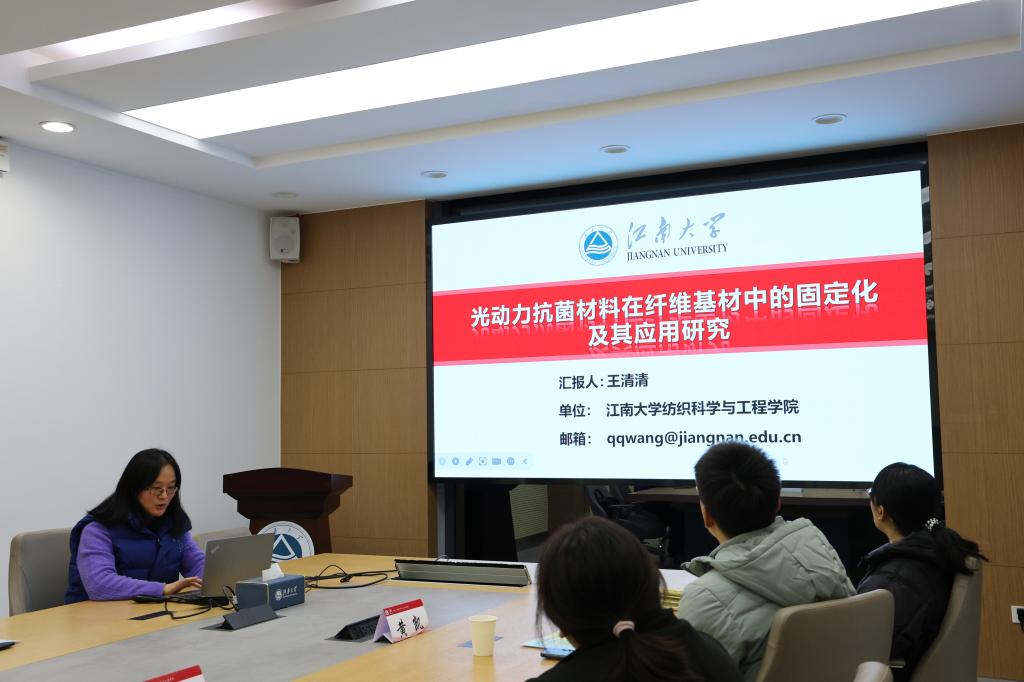 •王清清副教授展示了e光动力抗菌材料的开发及其在抗炎促愈方面的性能研究,凸显了纺织材料在感染控制与组织修复中的应用前景。
