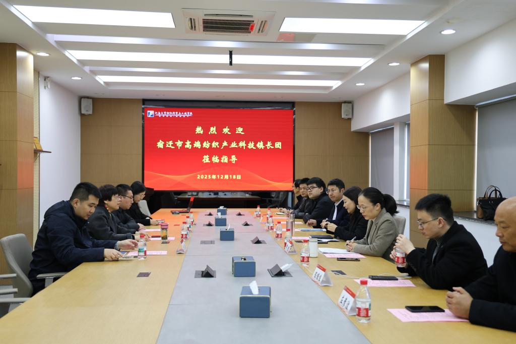12月18日下午,宿迁市高端纺织产业科技镇长团团长陈世林,宿迁市沭阳县科技局局长邱燕,沭阳经开区经济发展局局长仲勇率相关部门负责人及企业代表到纺织科学与工程学院调研交流。纺织科学与工程学院党委书记张菁燕,科技镇长团挂职教师司鹏翔及相关团队代表等接待来访一行。