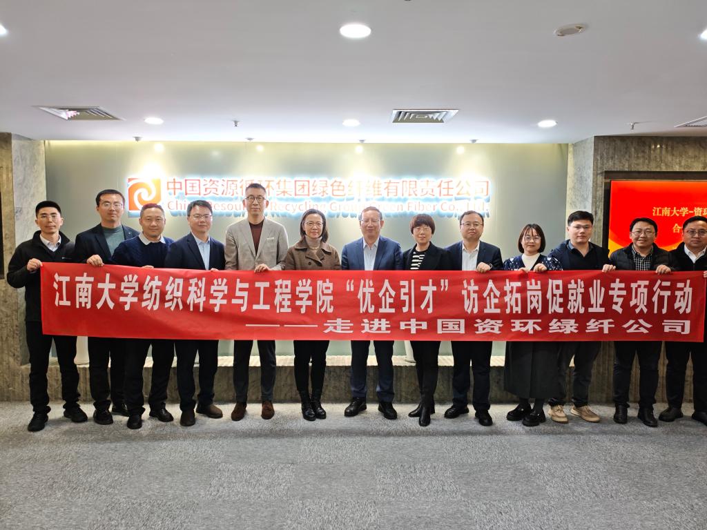 3月24日下午,学校党委常委、副校长张影陆带队赴中国资源循环集团绿色纤维有限责任公司对接交流并开展“优企引才”访企拓岗活动。江南大学纺织科学与工程学院党委书记张菁燕、院长马丕波,党委副书记兼副院长王恒,副院长张丽平、刘庆生等参加活动。中国资环绿纤公司党委书记、董事长陈世杰,党委组织部副部长郭远帆,市场开发部总经理孙玉成等出席活动。会议由中国资环绿纤公司科技创新与数智化部副总经理年春桥主持。