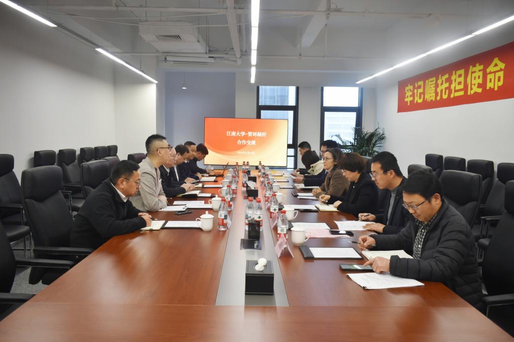 在听取情况介绍后,张影陆指出,江南大学作为教育部直属、国家“211工程”重点高校和“双一流”建设高校,中国资环绿纤公司作为央企中国资源循环集团旗下一级子公司,双方共同肩负着服务国家“双碳”战略,推动循环经济可持续发展的重任。希望双方建立全面合作伙伴关系,成立工作专班,形成工作方案,建立常态化交流沟通机制,打造校企深度合作示范标杆。陈世杰介绍了公司资源回收、绿色产品生产、检测平台服务等业务情况,他表示公司成立之初就前往江南大学对接交流,双方优势资源高度契合,合作前景广阔。此次学校来访必将进一步深化双方在共建科研平台,强化在技术攻关和人才引进等方面的务实合作,共同推动经济社会绿色转型发展。