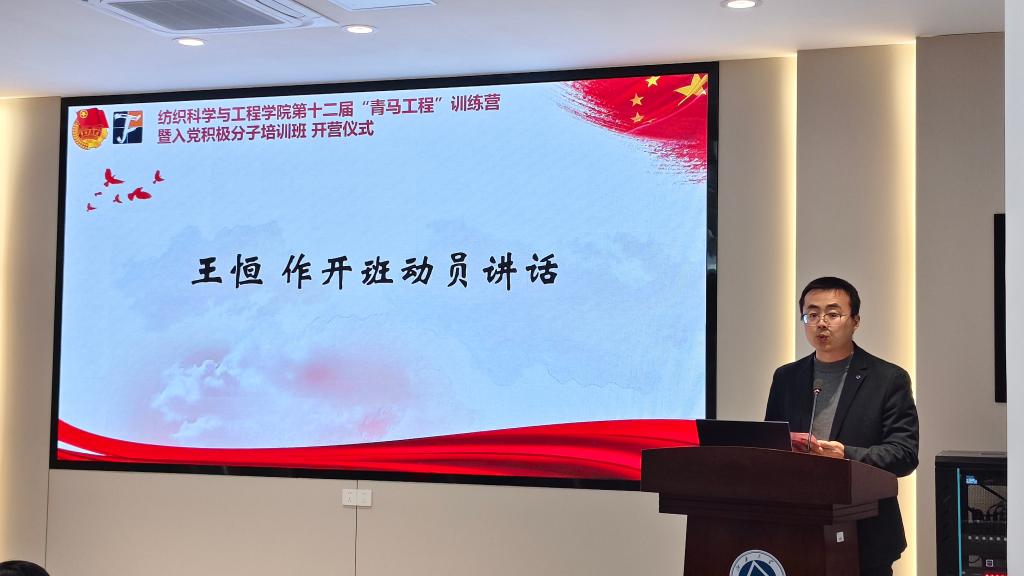3月26日晚,纺织科学与工程学院于学院A103会议室举办第十二届“青年马克思主义者”培养工程训练营暨入党积极分子培训班开营仪式。学院党委副书记、副院长王恒,学院关工委常务副主任、特邀党建组织员谢翠林,马克思主义学院讲师毛钦,学院学工办主任兼分团委书记任学敏,2025级研究生辅导员张旭,学院学生会执行主席周珈宇出席仪式,训练营成员和入党积极分子共计100余人参与培训。活动由学院学生会团委通讯社唐新月主持。