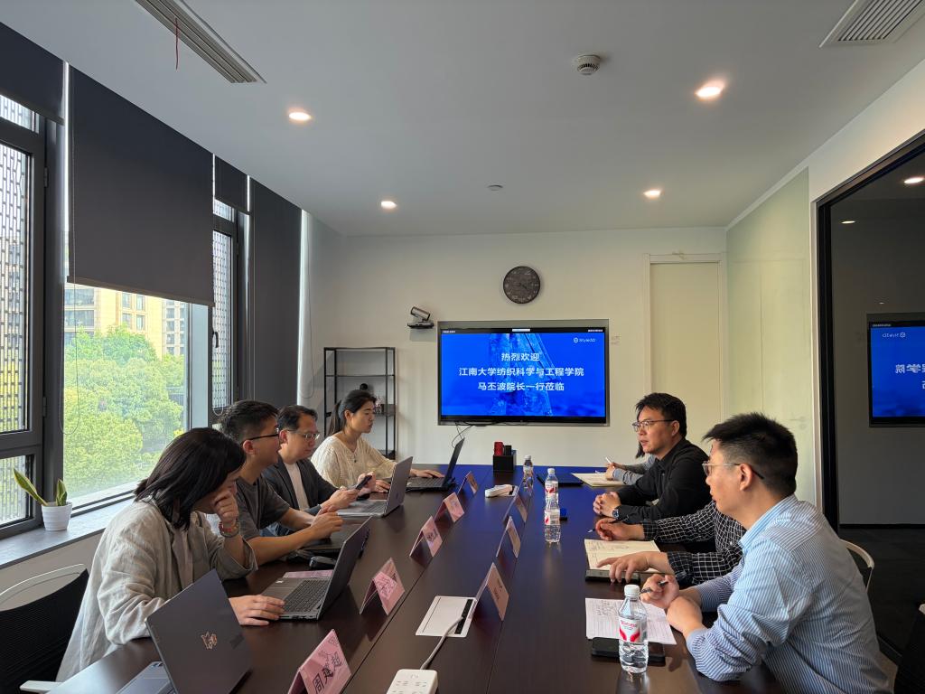 为高质量推进江苏省纺织工业软件学院建设,精准对接产业需求优化人才培养方案,深化校企协同育人与科研合作,4月27日下午,纺织科学与工程学院院长马丕波率队赴浙江凌迪数字科技有限公司开展专题调研与座谈交流。学院副院长刘庆生、纺织系主任周建及院长助理吕婧参加活动,凌迪科技董事长刘郴、事业部总经理董灵丽、工程师骆立康及相关部门负责人热情接待并参与研讨。